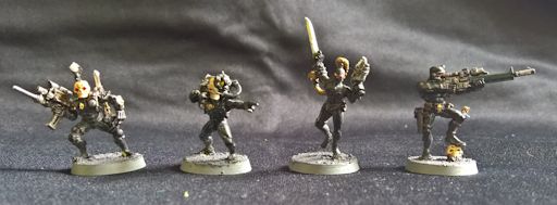The secret police of the Imperium, inquisitors guard against threats from within and without. Inquistors and members of their retinues can be used to add some interesting variation to Imperial forces.