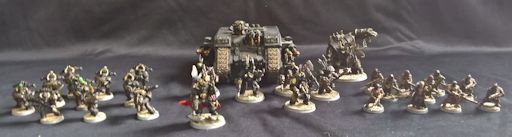 The genetically enhanced space marines are humanity’s greatest defenders. Each marine is worth several ordinary human troops and has the best weapons and powered armour. This makes marines a good starting army since it takes a smaller number of troops to create a viable fighting force on the table.