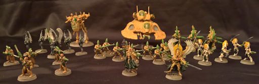 Living in massive spacecraft drifting in deep space, the craftworld Aeldari are the most common of their kind. A craftworld's army is made up of militia drawn from their civilian population as well as specialists who have dedicated their lives to one particular aspect of warfare supported by highly advanced vehicles and support weapons. Even the dead have a role to play in defending craftworld, their souls placed in wraithbone bodies to continue to fight.