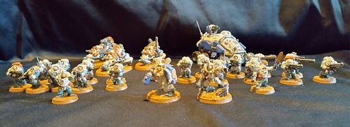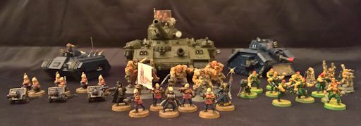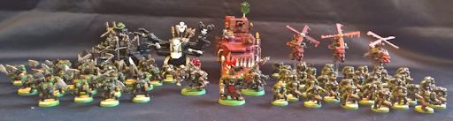 The Imperial Guard is the largest fighting force in the galaxy, drawing its troops from almost every planet in the Imperium. Although its troops are ordinary humans and have only the most basic of equipment they make up for this in their massive numbers of infantry and armoured vehicles that range from Chimera troop carriers up to the lighty Baneblade super heavy tanks.