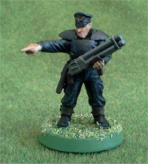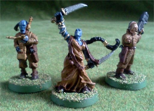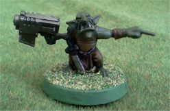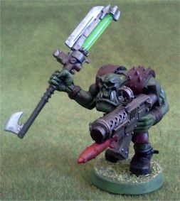 Dariel Thayne uses parts from a variety of sources. The body and legs are from the Imperial tank accessory sprue, amrour from kroot and the head from a Mordian imperial guardsman. His shotgun is from an old Necromunda weapons sprue.