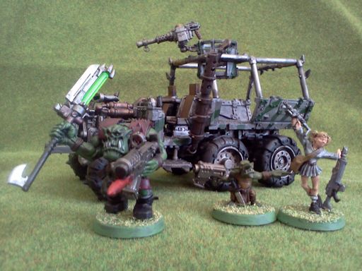 To accompany my fan fiction, I decided to convert several miniatures to resemble the main characters. This page shows you the results. Two Heads Smasha Butt Face with Gorrid and battlewagon |