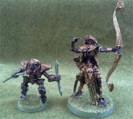 Overlord Mazakatek & The Huntsman Lord Mazakatek is made from parts from a variety of sources. His head and shoulders are from a Blood Bowl star player and his arms and legs from an old metal necron imortal. The Huntsman is simply a Tomb Kings ushabti with great bow mounted on a 40mm round base.