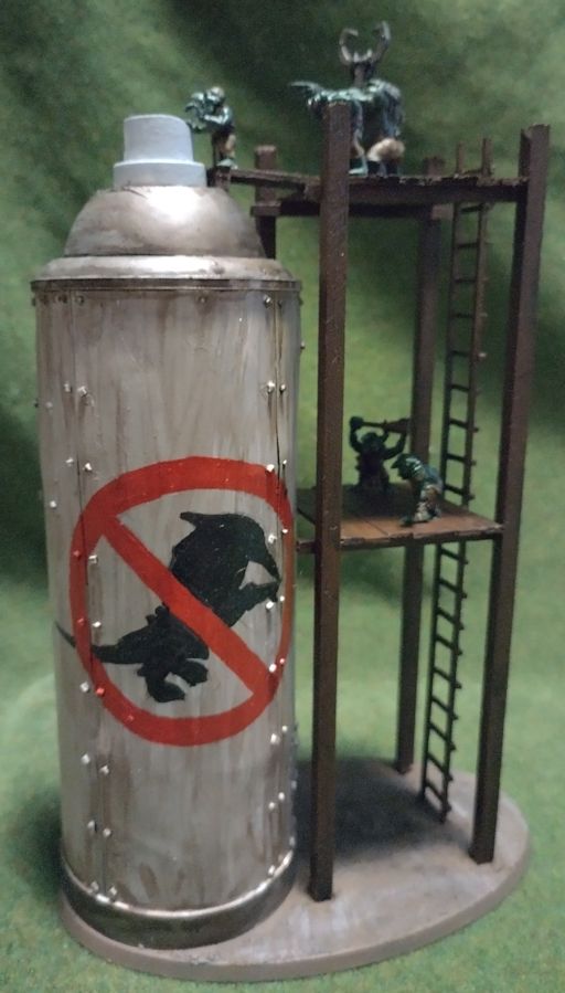 A step up from the SWAT team is this elite chemical warfare unit. The spray can is actually made from the lids of three cans wrapped in thin plasticard while the nozzle is a spray can nozzle taken from a used can.