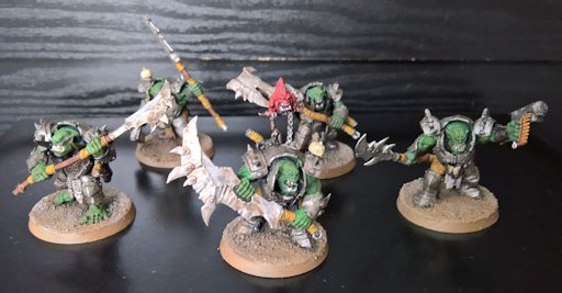 The feral Snake Bites shown in the following images were made using Warhammer Fantasy savage orks and swapping their weapons for 40k ork ones.