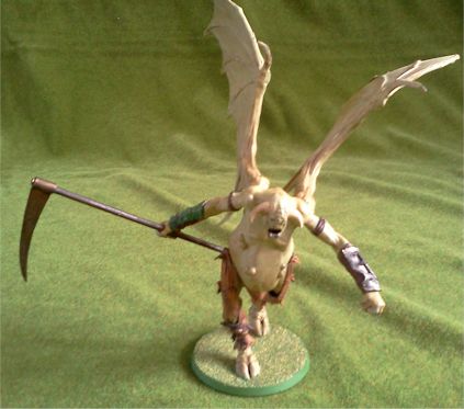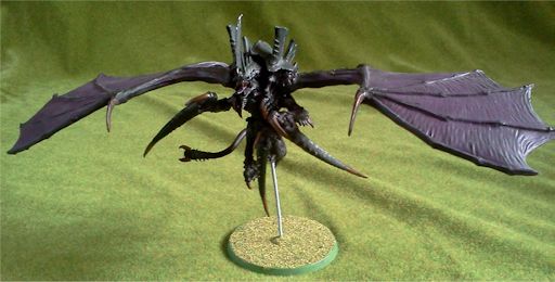 Tyrannids This hive tyrant uses Lord of the Rings balrog wings attached in place of its upper arms. Scything talons ahve been used for the middel and lower sets. The lack of legs gives the impression that this creature spends most of its time in the air. |