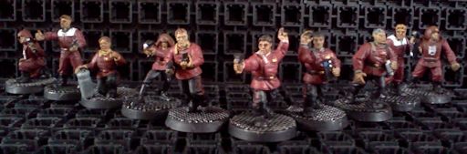 Star Trek These 28mm scale miniatures were converted from a variety of sources. The male figures use various Games Workshop Cadian components with bare heads from West Wind while the female figures are converted from a mixture of sources. To accompany the figures above this shuttle was made entirely from plasticard. Instructions for the figures and shuttle can be found in the Projects section.