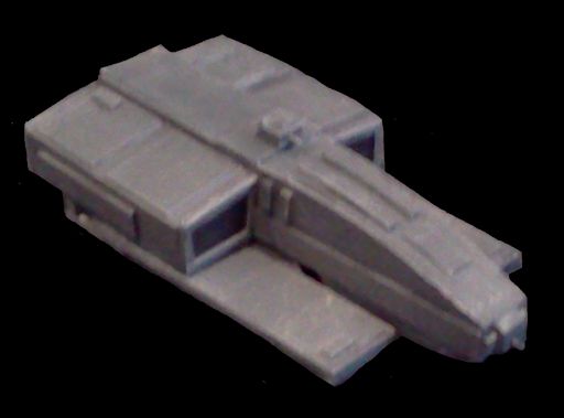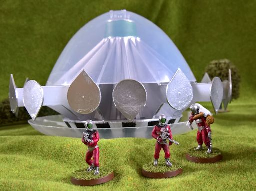 The Rebel Alliance Freerunner repulsorlift tank was created by West End Games for their Star Wars Roleplaying Game. This scratchbuilt model based off the image in the Rebel Alliance Sourcebook is roughly to Star Wars Legion scale, though the length was reduced to make the model less cumbersome. UFO This model of the alien spacecraft from the Gerry Anderson TV series was made from a variety of spae parts, starting with a transparent plastic easter egg container and creating everything else in scale to this. Figures of the alien crew were purchased from Crooked Dice. |