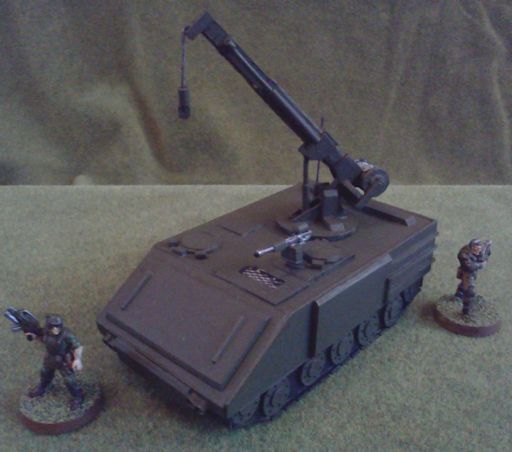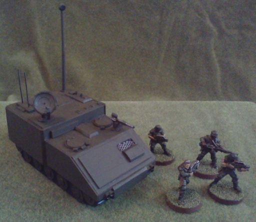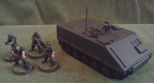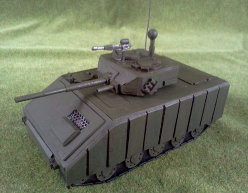 Scratchbuilt Armoured Vehicles This is a set of scratchbuilt vehicles for which I used just a single sheet of 330mm x 220mm 1mm thick plasticard for the core and then added various details. The basic templates for all of these are available in the Projects section. The figures used with these tracked vehicles are from EM-4 future troopers range. Main battle tank. Infantry fighting vehicle. Armoured personnel carrier. This uses the same core as the IFV but without the turret. Command vehicle. Again this uses the same core as the IFV. Armoured recovery vehicle. This also uses the IFV's basic core but with different details.