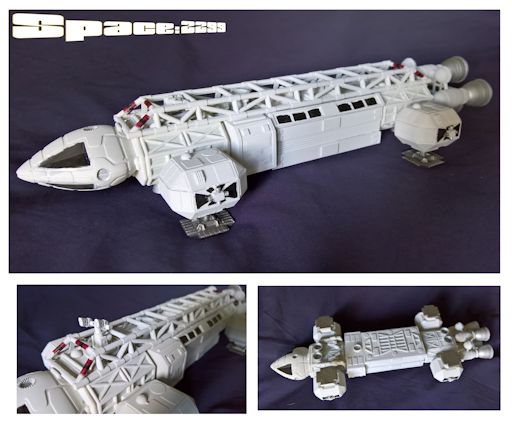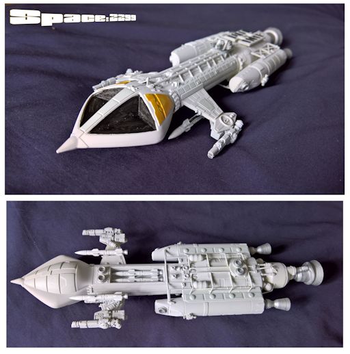 Space: 2299 When I began to write my Space: 2299 fiction I knew that I wanted to modify the design of the Eagle and Hawk spacecraft from the original Space: 1999 TV series while keeping the same general appearance. The Eagle shortens the detachable module, in this case the basic passenger carrying module, in favour of a dedicated air lock that is an integral part of the lifting body. The original design had a militarised variant armed with a ship-to-ship laser but this was not externally visible. For my variant I used the hotshot volley guns from a Games Workshop Taurox APC as the easily visible gauss cannons. The defensive turret added in the second series was built using the smaller hotshot volley guns from Militarum Tempestus models. The Hawk is a dedicated attack craft that like the Eagle had a laser that was not visible on the model from the TV show. Again I used Taurox hotshot volley guns for the gauss cannons that I mounted on the wings instead of under the cockpit. The lower part of the hull was cut away to form an internal weapons bay to take missiles made from the hunter killer missiles from Imperial Guard kits. the same type of missiles were also mounted beneath the wings while a defensive turret was mounted on the upper hull. Eagle and Hawk model kits are copyright MPC.